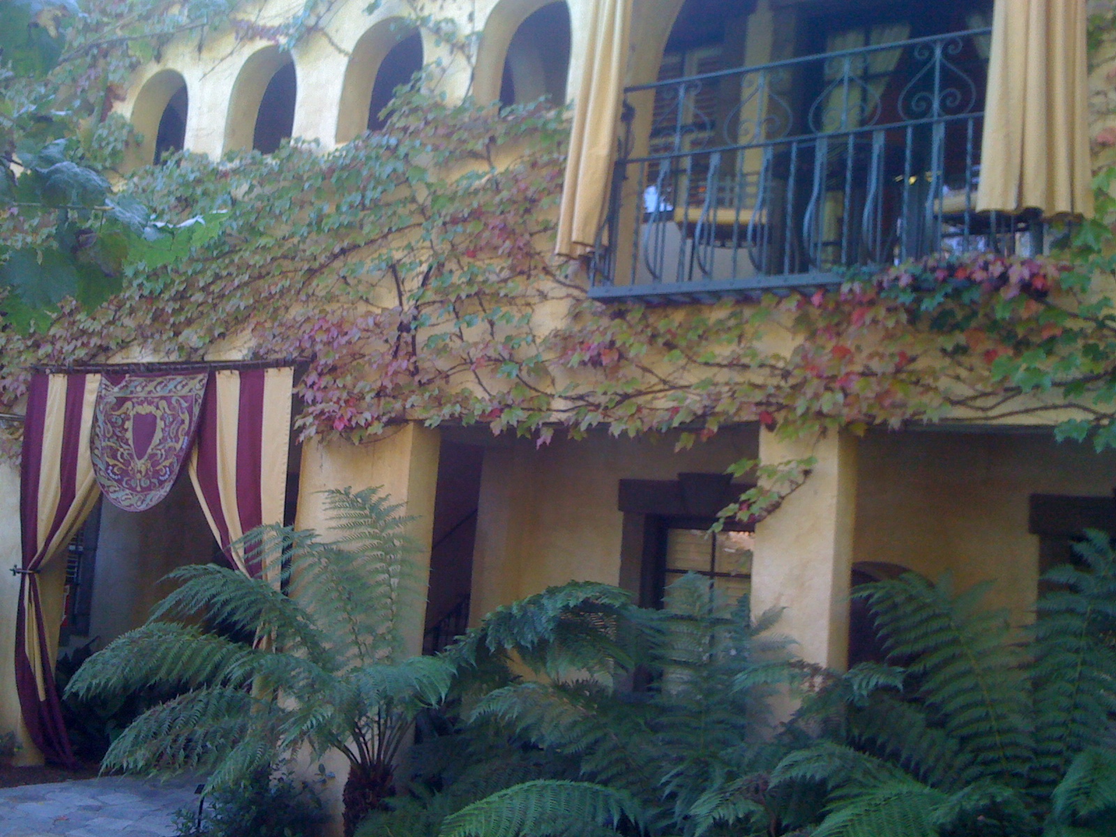We usually rent a room up top, where we walk out of the heavy metal doors, can sit out on a tiled patio and overlook about 300 acres of turning vineyards. My favorite time of year here. The days are warm, the nights starting to chill but still sweater weather, and the colors of the valley floor are spectacular.
